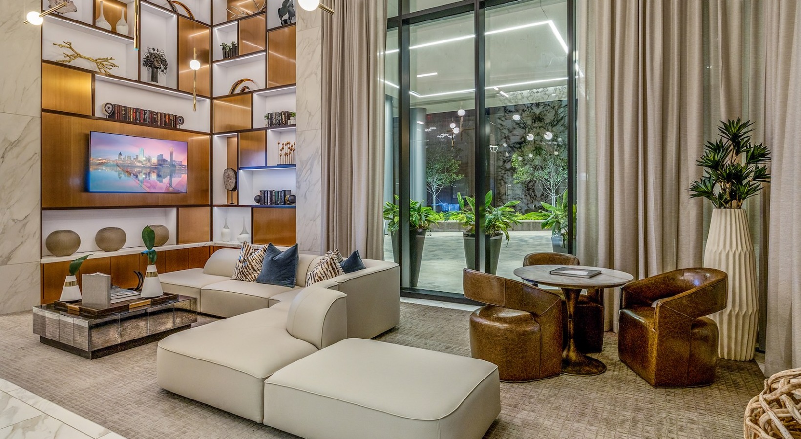 The Preston Hollow 22-floor luxury high-rise includes a luxury Penthouse Collection featuring impeccable designer finishes, modern appliances, panoramic views, and personalized services designed for comfort and convenience.